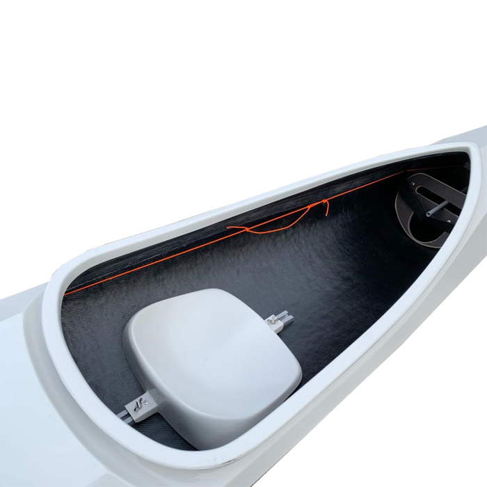 | Accastillage | Protection de dérive arrière, siège réglable et cale-pieds réglable. |